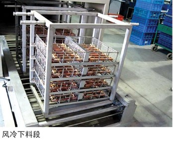 基本組成:由清洗段、過(guò)渡段、烘干爐段、風(fēng)冷下料段、上料小車、 吊籃及電器控制系統(tǒng)組成。